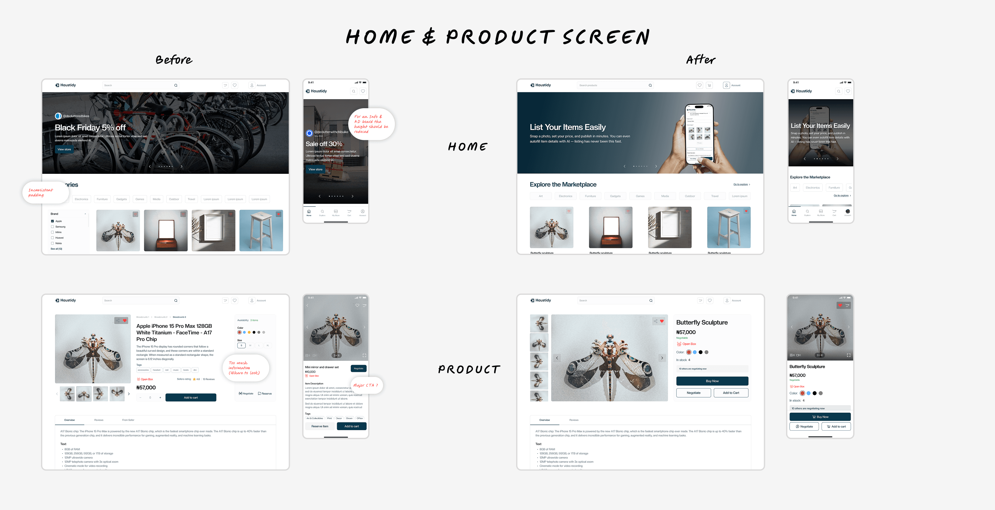 I love making digital products feel effortless. On the Haustidy project, I redesigned the entire user journey, from creating a listing to confirming a delivery. The result is a simple, intuitive experience that helps people declutter their homes, make money, and shop sustainably, all in a stress-free way.