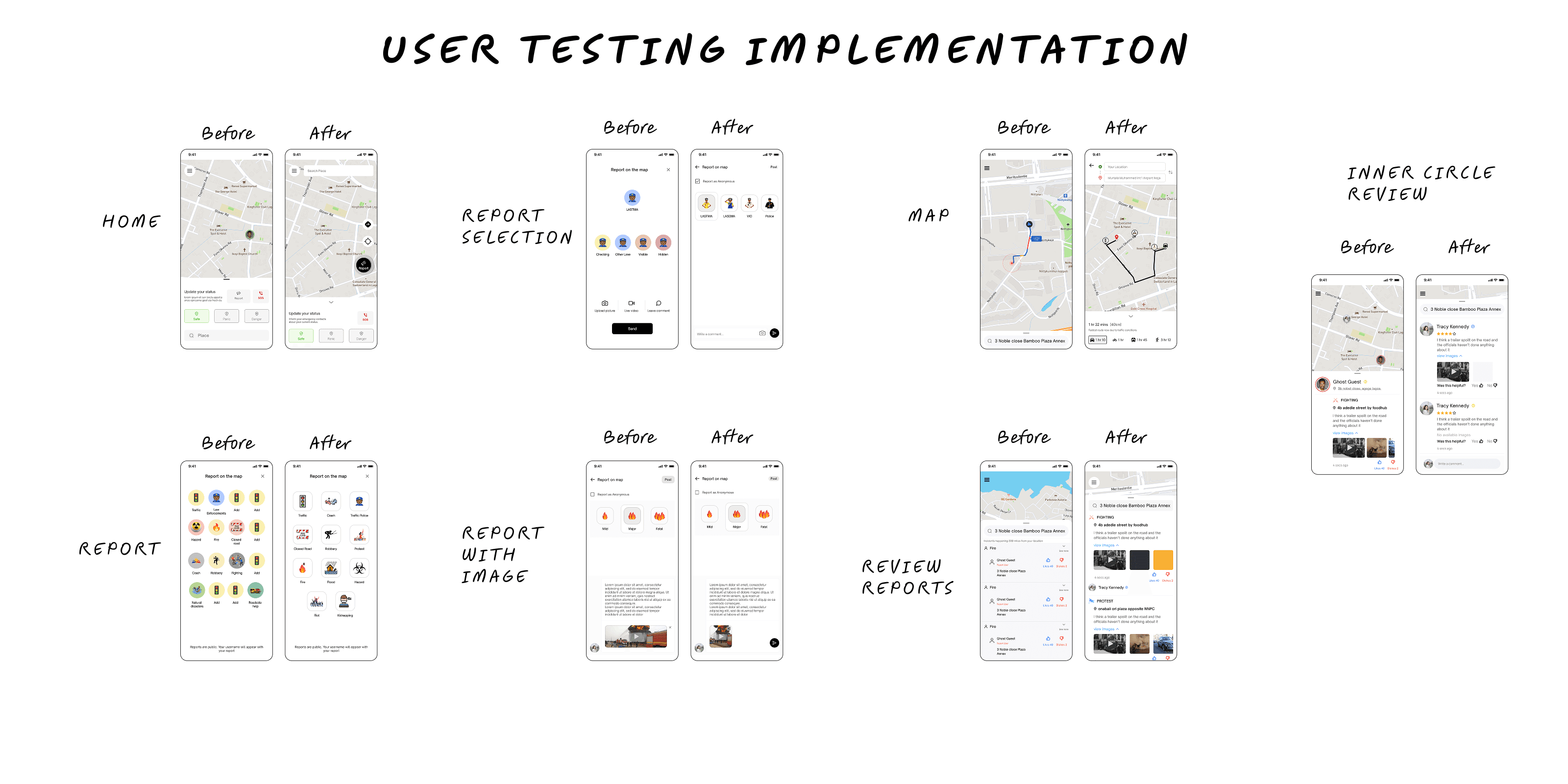 User testing showed users sometimes felt unsure if their reports were sent, so we added instant confirmations with subtle animations to build trust. We also streamlined the safety check-in by reducing steps and moving critical actions upfront, making the flow faster and more intuitive.